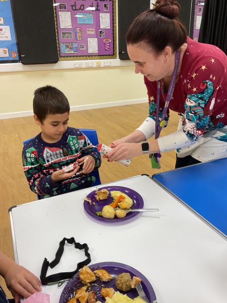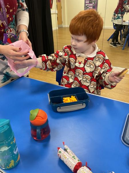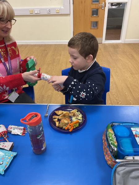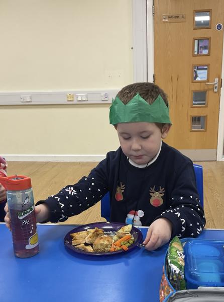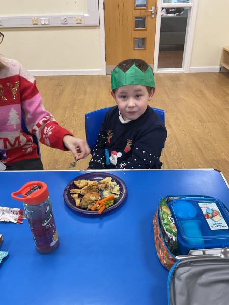 Some of Acorns enjoyed trying the Christmas dinner for lunch and we all celebrated with a Christmas cracker and tried our Christmas hats on.