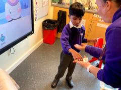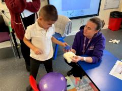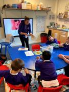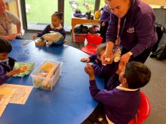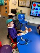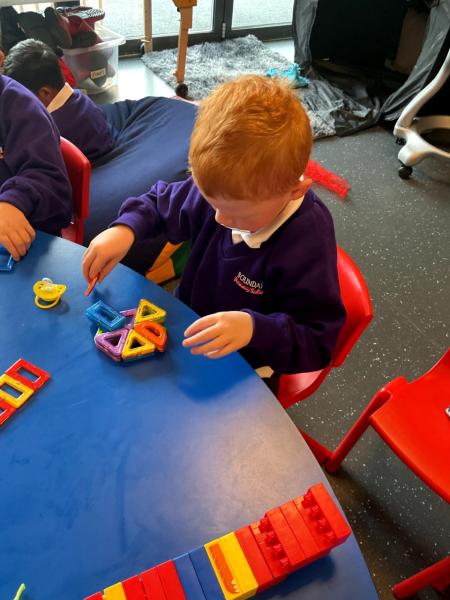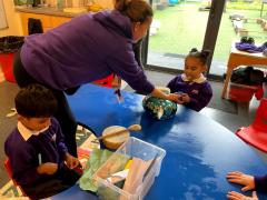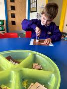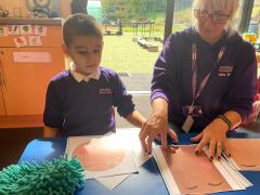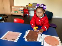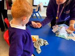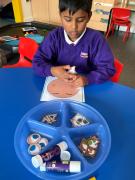 We have been choosing different facial features while making faces in art. We have been choosing different objects to explore in sensory phonics and maths.