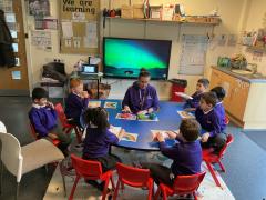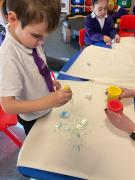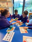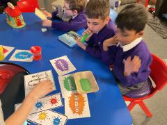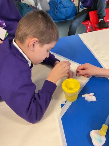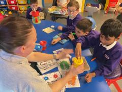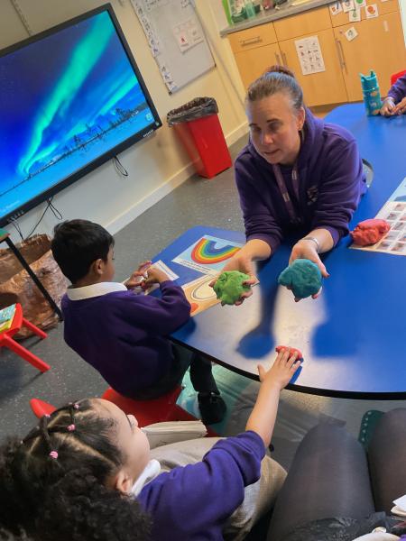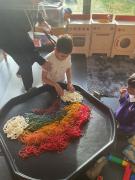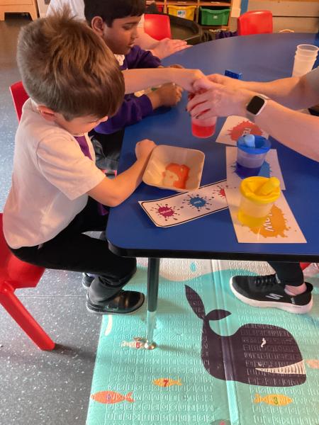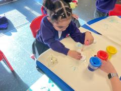 This term we have been having lots of fun exploring colours and mixing colours during expressive arts. We loved using lots of different mediums to explore mixing colours, including paint, play dough and coloured water. We have been developing our curiosity and anticipation as we wait for the colours to change.