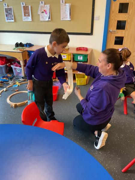 Acorns have enjoyed meeting our school nurse Miss Brooks. She visited us as part of our topic, people who help us. We enjoyed a wonderful multisensory learning experience about help and helping others.