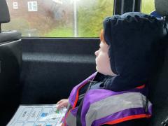 We also looked out for different modes of transport as part of our topic. Although it was a wet afternoon, we saw lots of cars, buses, lorries, a number of trams and even a Spitfire aeroplane on the roundabout.