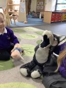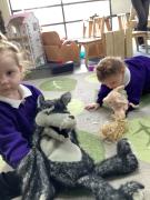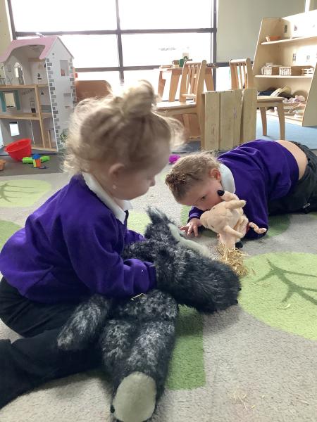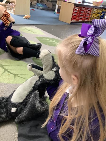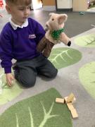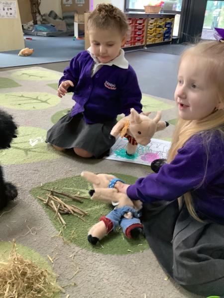 Thhe children have really enjoyed retelling the story The Three Little Pigs using puppets. They really got in to character, using differrent voices and using the correct story language.