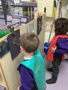 Everyone collaged and painted a Gingerbreadman, wrote a list of the characters from the story and retold the story at the story telling table.