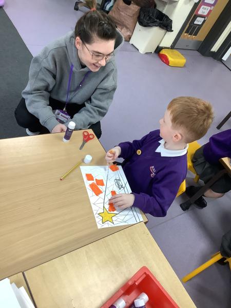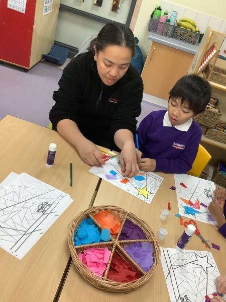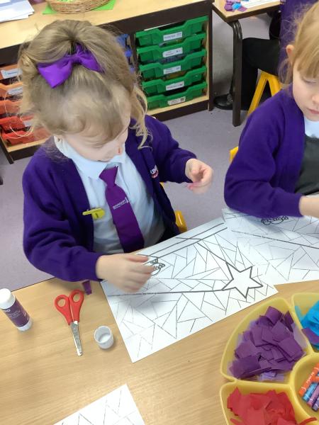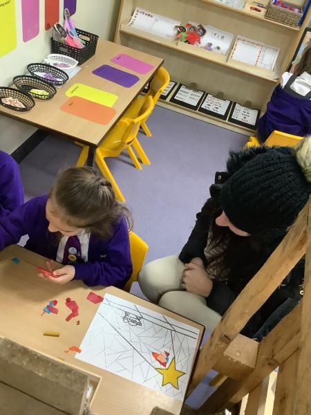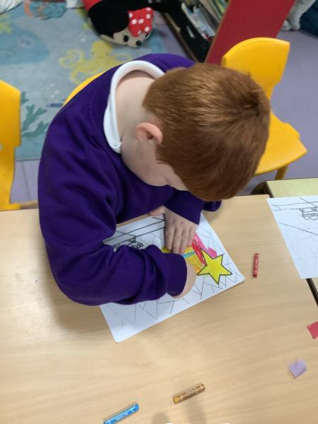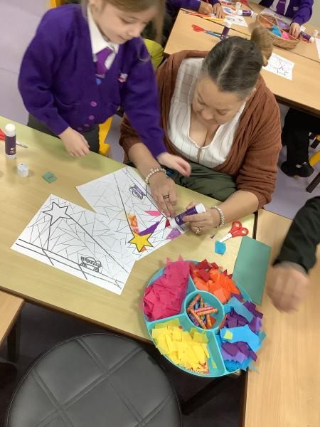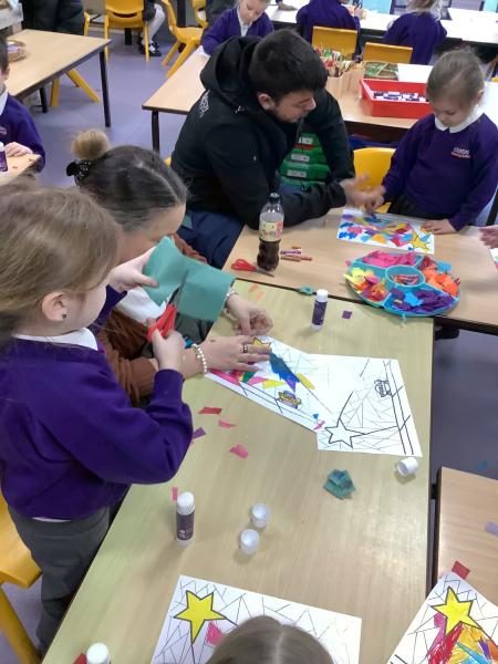 Today, we welcomed our parents into the classroom to complete some learning together. We used our knowledge of the Christmas story from our learning in RE to create a piece of art representing the star shining over baby Jesus in his manger. We used a range of mediums including: collaging with tissue paper and pastels to create a colourful representitive piece of art. Thank you to all who joined us- we thoroughly enjoyed it!