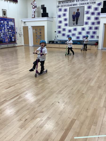 As part of health week, we thoroughy enjoyed a scooter workshop with Elanor! Firstly, we prepared ourselves by putting on our knee pads and helmets. We listened carefully to how to ride the scooters and even learnt some new tricks!
