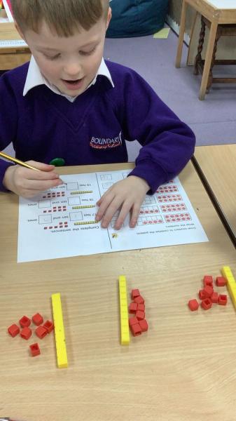 This week in maths we have been developing our understanding of teen numbers. We have learnt about the value of tens and ones in numbers within 20 and made numbers using base 10, numicon, tens frames and counters.