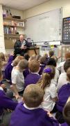 Today we had a visit from Reverend Thompson. He came into our classroom to tell us about his job and talk to us about baptism. Reverend Thompson shared information with us about his daily practice and how it is his job to be a teacher, to lead services and to share Gods message. He also visits those who are ill and are not able to physically visit the church. We revisited our previous learning about baptism with Reverend Thompson and the important artifacts, such as the font, candle and water. He also told us the important part the Godparents and vicar play in a baptism ceremony. Reverend Thompson showed us how he conducts a baptism and explained to us that new members of the congregation are also given a candle as a symbol of light.