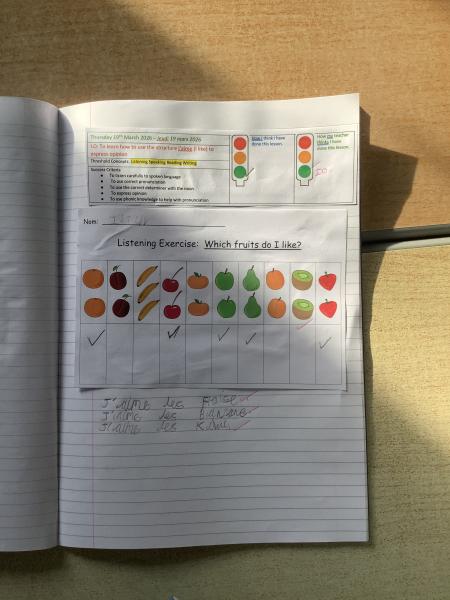 In French this half term, we’ve been learning all about fruits. This week, the children practised naming familiar fruits such as apple, peach, pear, banana, cherry, plum, orange, apricot, strawberry and kiwi. They also worked on choosing the correct French article: un or une for singular fruits, and les for plurals. Using words like une pomme, un abricot and les fraises, the children created simple sentences to say which fruits they like or dislike. Through speaking games and partner practice, the class is becoming much more confident and enthusiastic about using French in real conversations!