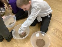 Our Year 3 scientists had a fantastic time exploring the different layers of soil through a hands-on classification experiment! Using a range of sieving tools—including colanders and fine-mesh sieves—the children carefully separated a mixed soil sample into its distinct components. As they sifted, they observed how the pieces of organic matter and plant materials formed the humus layer, followed by the finer particles of topsoil and the denser subsoil beneath. The activity helped pupils understand how each layer plays an important role in supporting life and healthy ecosystems. The session was filled with curiosity, teamwork, and plenty of muddy excitement as the children discovered what lies beneath our feet.