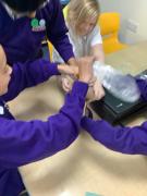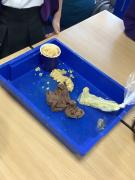 - Stomach: The bread went into a zip-lock bag with orange juice (our stomach acid). The children loved squishing the bag to mimic churning!