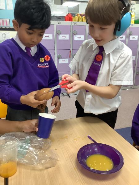 The classroom buzzed with excitement as tables were covered with paper cups, orange juice, zip-lock bags, and a pair of tights (yes, tights!). The children were curious—“Are we really going to make a stomach?”—and that curiosity set the tone for an unforgettable lesson.