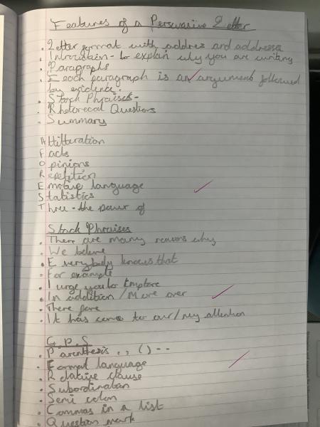 To kick things off, we explored a WAGOLL (What A Good One Looks Like). By reading it carefully, we pulled out all the key features that make persuasive letters so powerful. We spotted things like: