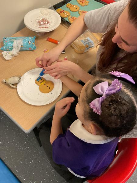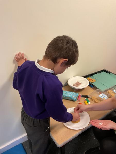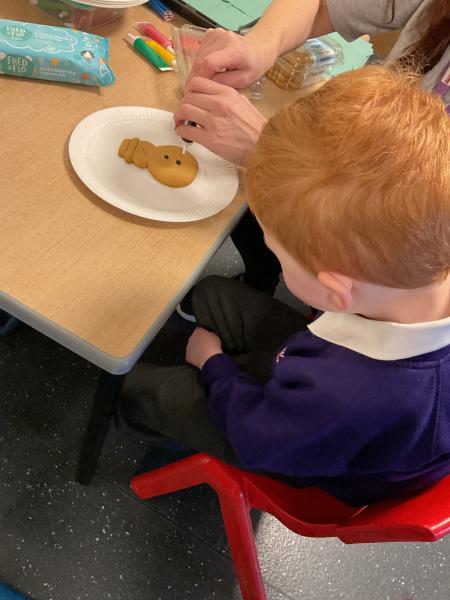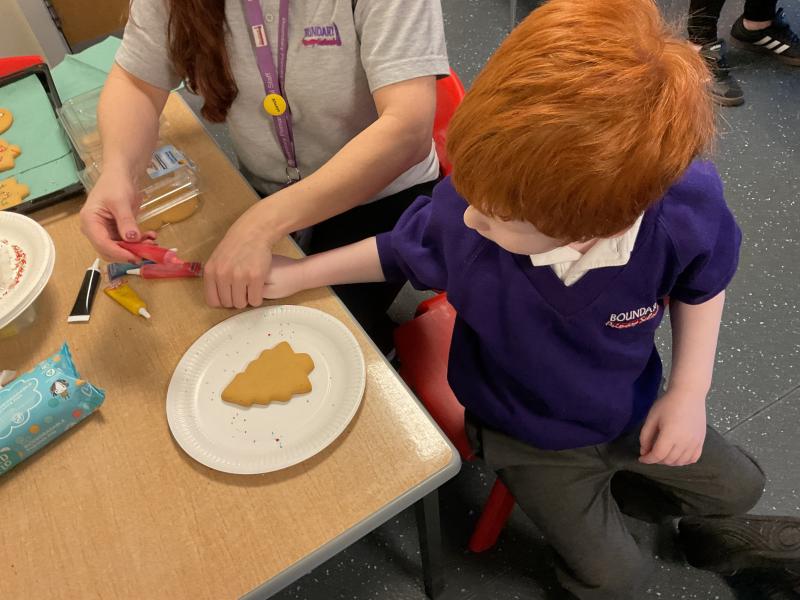 Acorns have had lots of fun decorating gingerbread trees and snowmen. We have been developing our choice making, choosing which item we wanted to decorate. We then made a choice between different coloured icing to decorate. We love using a variety of different opportunities to develop our communication skills and learning.
