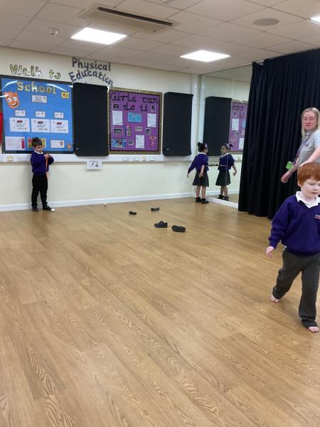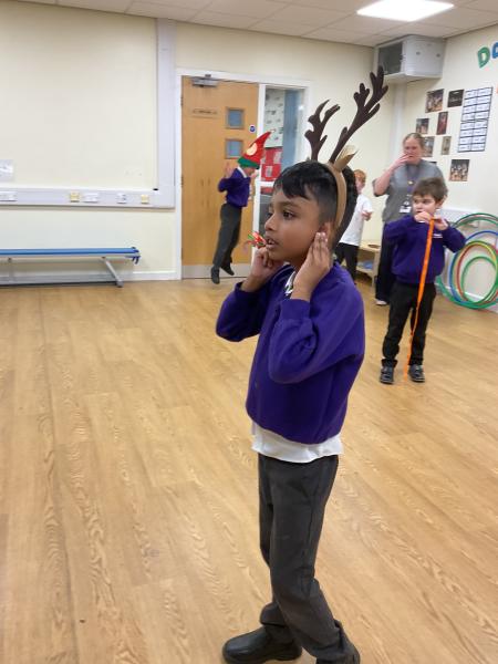 Acorns had fun taking part in the Elf run in the dance hall. We enjoyed reindeer racing, elf running and Santa snowballs. It was lots of fun.