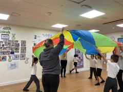 We enjoyed engaging in parachute games and then developing our ball throwing skills and accuracy.