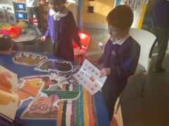 We have been choosing different facial features while making faces in art. We have been choosing different objects to explore in sensory phonics and maths.