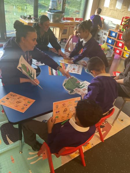 Together we have been learning colour names and signs and developing our communication skills, by repeating modelled words or finishing the ends of sentences. We have also been developing our engagement and concentration skills.