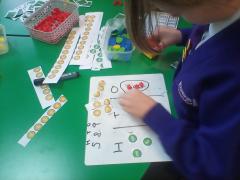 In Maths we have been looking at different strategies for addition and subtraction. We have looked at practical strategies with physical resources, counting forwards and backwards, before we started to look at efficient methods.