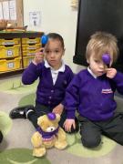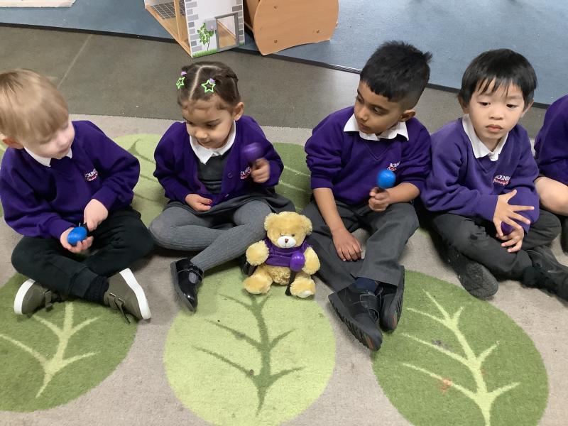 During music time, Teddy helped us listen carefully to the different ways instruments were played—loud, quiet, fast, and slow. We listened, copied rhythms, and took turns, just like we will in a Reception. Teddy also joined us for story time, where we practised sitting, listening to a whole story, and joining in with repeated parts.