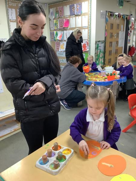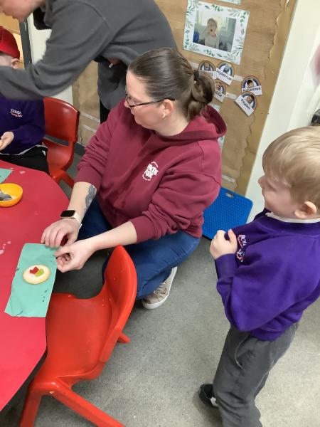 We had a lovely time welcoming parents into nursery for our Easter Stay and Play session. Children were excited to show their families around the classroom, proudly sharing their favourite activities. Parents and children enjoyed making Easter crafts together and icing biscuits—creating plenty of smiles (and sprinkles!).