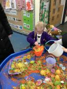 It has been a week of finding treasure this week. The children came in on Wednesday to discover that Pirate Pam has stolen Pirate Pete's treasure and frozen it! The children worked together to try and free the treaure from the ice and discussed how we needed to melt the ice to get the treasure out. They used warm water, syringes and brushes to try and melt the ice.We even tried little spades to chip away at the ice. You will be pleased to know that we got all of Pirate Pete's treasure back for him!