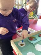 We are working hard to build up our finger strength in Nursery to help us develop a strong pencil grip. This weeks challenge - to fill the tiny holes on a Duplo board with water using a pipette! It took skill, concentration and a lot of patience. the children rose to the challenge and became very skilled at filling the tiny holes! We will have the strongest fingers in the whole of Blackpool!