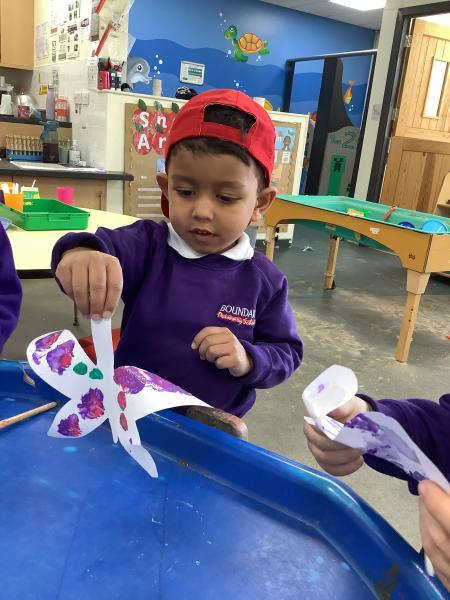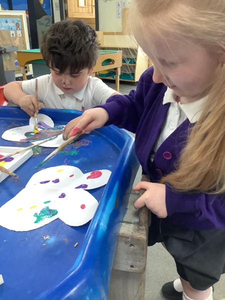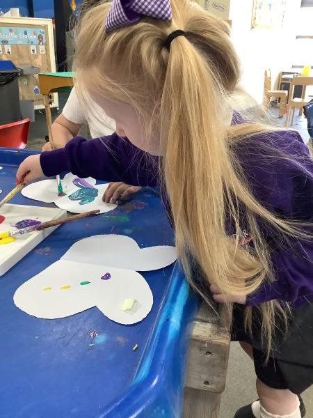Our Nursery class has been learning about symmetry by looking closely at butterfly wings. The children discovered that both sides of a butterfly’s wings look the same, which led to a fun and creative activity.