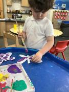 After reading the story "Alan's Big Scary Teeth" we talked about different animals and where they live. We found out about lions, tigers and elephants and how they live in hot countries. We then looked on the globe to see where the countries are. The children then decided the animals needed a good wash! They used pipettes and small brushes to scrub them clean!