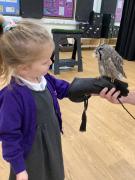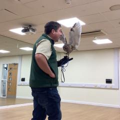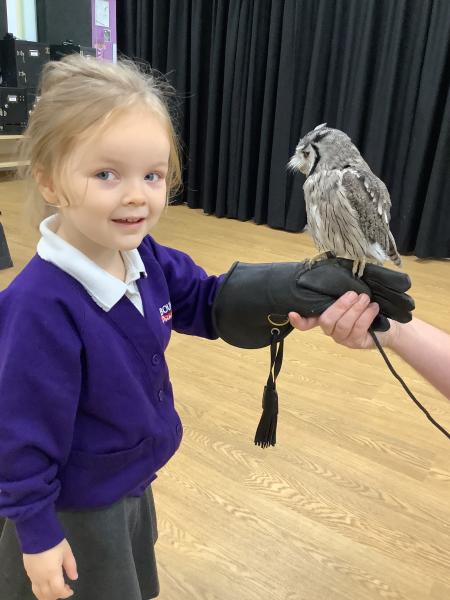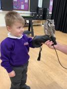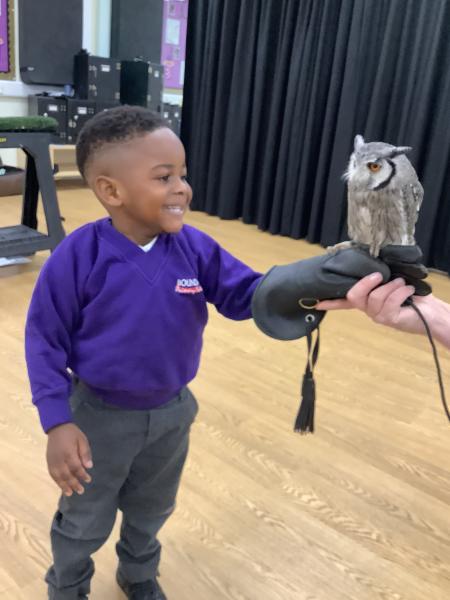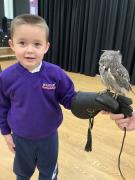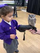 Nursery were very excited when they got to meet some real life owls! The chldren found out how owls move their heads all the way to the back because they can't move their eyes and that there is an owl who likes to burrow underground instead of living in trees! All the children remembred the owl we met with bright orange eyes and how owls like to eat bugs and mice!