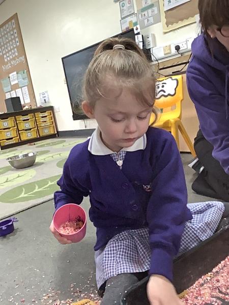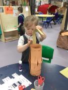 Nursery have been learning about Autumn and how as it gets colder, there is less food for the wildlife. We talked about how squrriels will collect as much food as they can and store it for winter (a bit like doing the big shop!) and how we can help the animals by leaving food out. We filled up some bird feeders with seeds and fat balls and are now waiting to see if any birds come to our Bird Cafe!