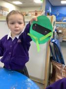 After reading the story "There's an Alien in your Book" the childlren followed instructions to create their own Aliens. They had to select the right amount of buttons, beads, eyes and pipe cleaners and then chose how to arrange then to create their alien.