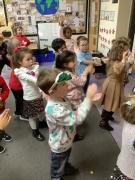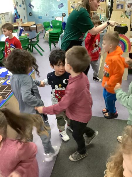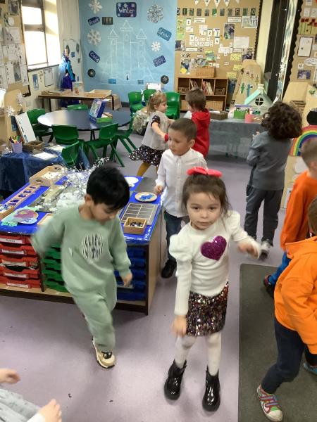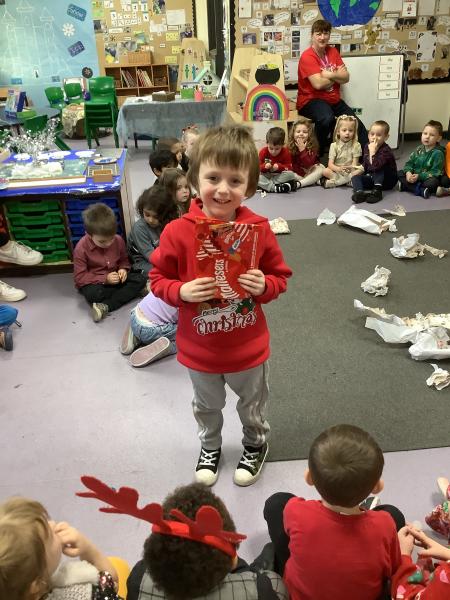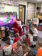 All the children came in their party clothes and had lots of fun singing, dancing, playing games, such as pass the parcel, musical statues and musical bumps. Then, to everyone's surprise, Santa came to visit with Christmas presents for everyone! After this, we had some party snacks before finishing for the Christmas Holidays!