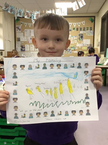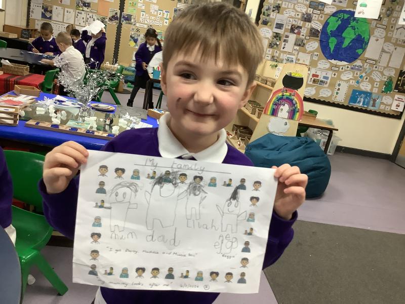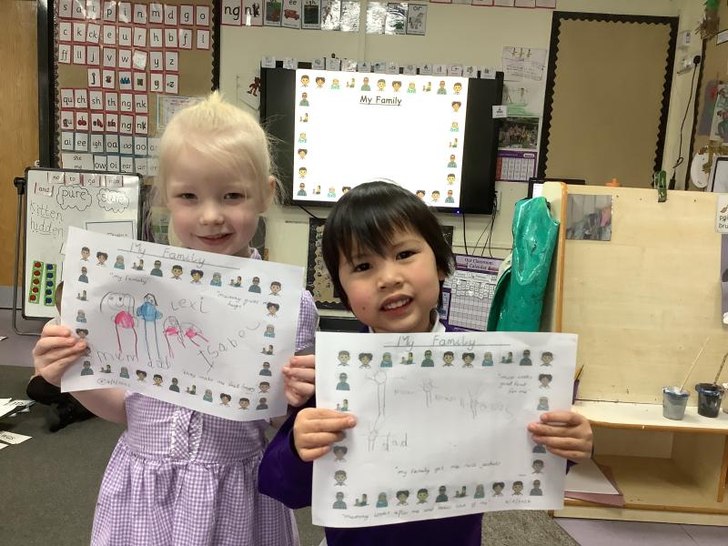 We also been exploring the differences and similarities between different families. We talked about how all families might look different but they all have people who look after us, care for us and love us.