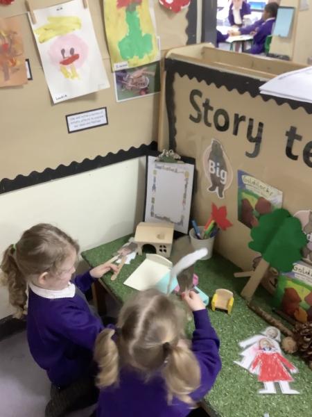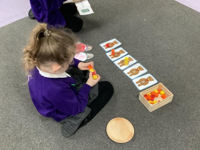 This week in Reception we have been reading the fairytale 'Goldilocks and the three bears' During our oracy sessions we have been focusing on learning new vocabularly and building sentences orally about the story. We then been writing simple sentences and captions about the story. We have also been making bears at the creative label, building different sized chairs and beds for the bears and using the playdough to make 3 different sized bears, a small, meduim and large. We have also been exploring number at our Goldilocks themed maths table.