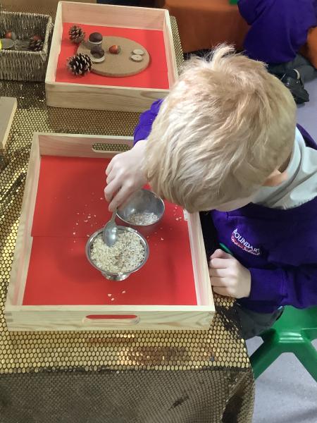 Reception have been busy tidying up their outdoor area after the blustery weather. There were lots of leaves and rubbish blown into our garden that needed to be tidied away so that the children can enjoy a clean and safe environment in which they can learn through play.This activity also helped the children who needed to develop their gross motor skills and turn taking.