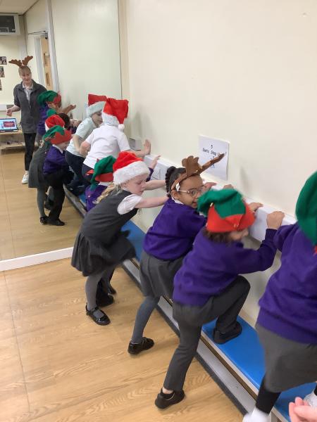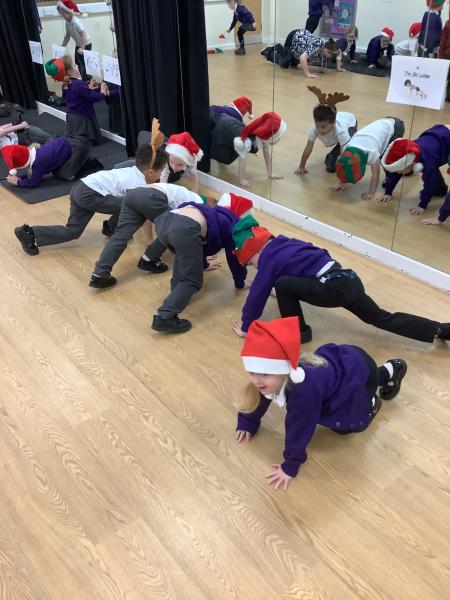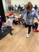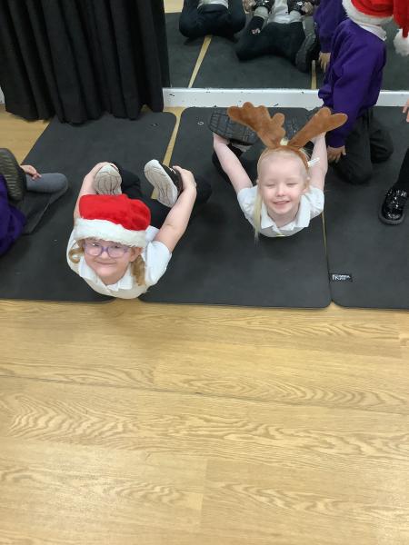 We all took part doing different sporting activities in the dance studio. There were six Elf Stations, The Ski Lodge, Christmas Yoga, Santa's Step Up, Toy Soldier Pressups, Elf Hurdles and the Snowball Toss