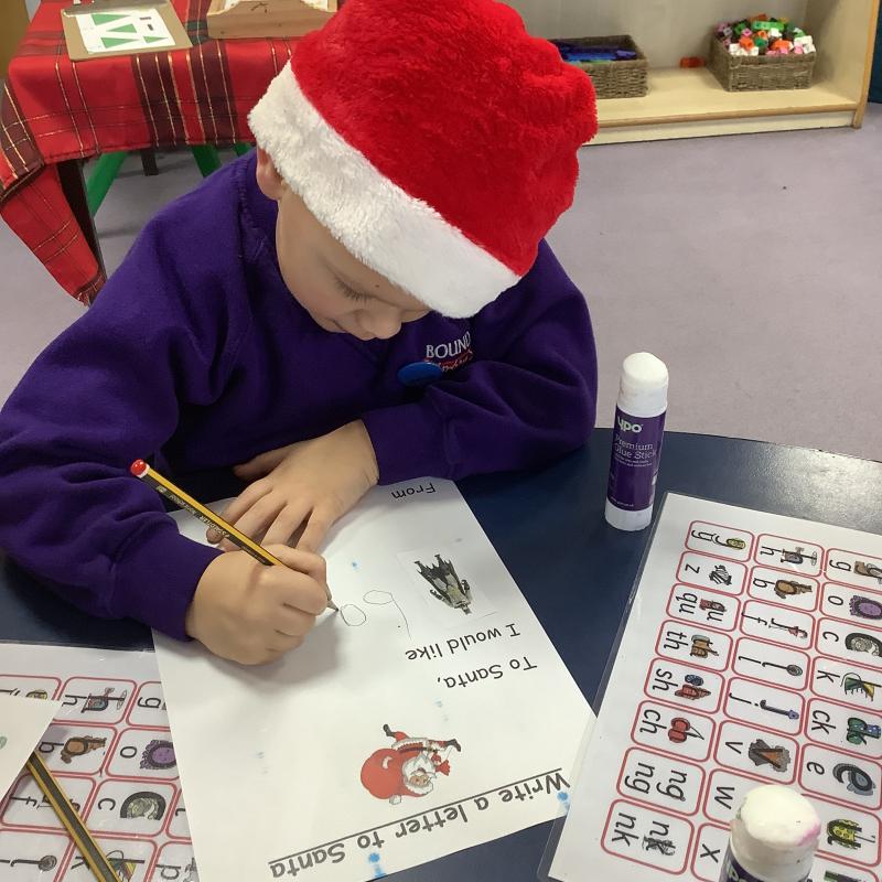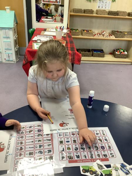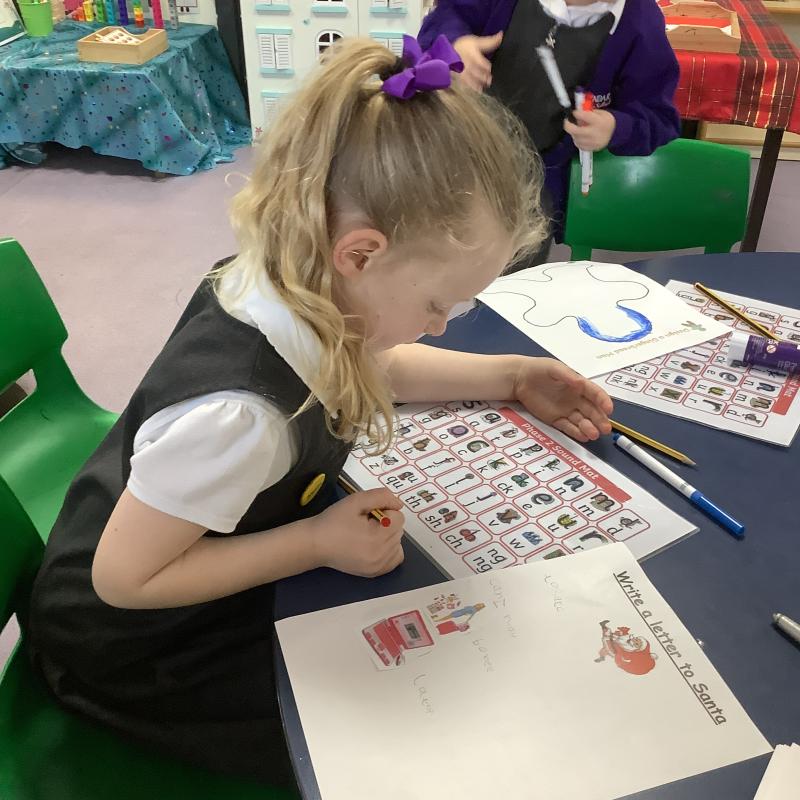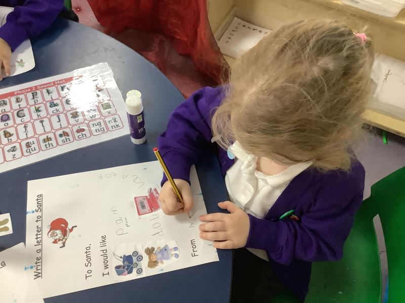 The children have been busy in continuous provision this week, wrting their own letters to Santa. The children worked independently, using the sound mat to sound out the different items they wanted and then added them to their list. They then took their letters home to post in time for Christmas.