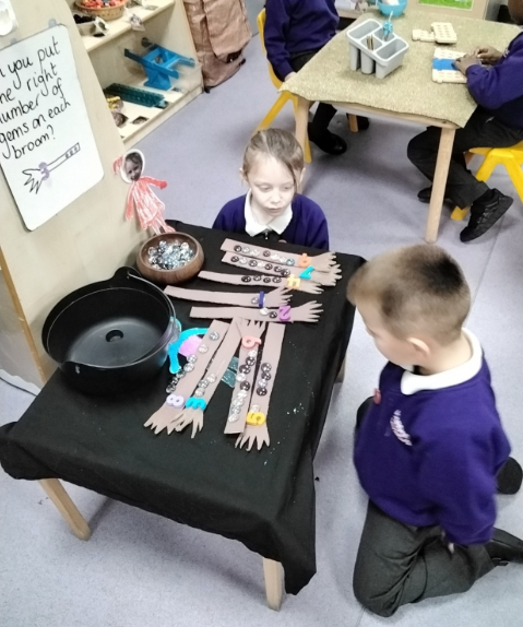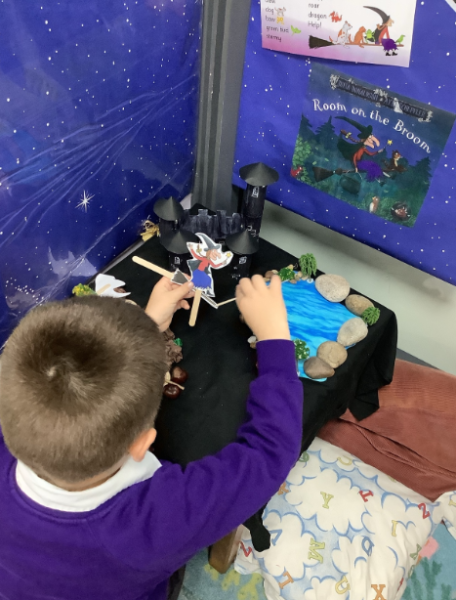 To begin our half term our focus is Room on the Broom. Over the last two days, we have enjoyed reading the story and discussing the key parts, characters and settings. Yesterday, we sequenced the key events of the story and retold it using key vocabulary and today we focused on writing short captions for characters speech and labelling characters and objects from the story. Over the next week, we will enjoy exploring the areas including themed motor skills tasks, maths tasks and telling stories in our story telling area.