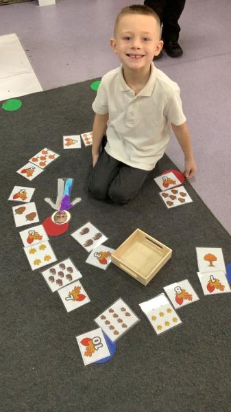 In Year 1 this week we are reading the story 'Leaf Man.' We began the week by unpicking the key vocabulary in the story, learning the meaning of any new words and retelling the key parts of the story. Throughout the week we have then printed our own leaf character and written sentences to describe where our leaf character may travel. We have also completed lots of different activities in our provision, including creading AB patterns, matching numeral to quantity and accurately counting within 10.