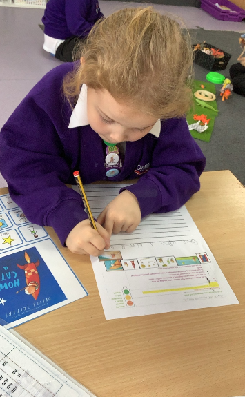 So far, we have been retelling the story in our storytelling corner, using props and role play to help bring it to life. We have also been sequencing the story by matching sentences to the correct parts, helping the children to develop their understanding of beginning, middle and end. The children have enjoyed retelling the story in their own words, sharing their ideas and interpretations with confidence.