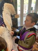 Before building, we talked about the important features a Sukkah must have. The children remembered that it needs three sides, a roof made from natural materials such as leaves or twigs found on the ground, and that it is built to show thanks to God for providing food, water, and protection during the journey through the desert.