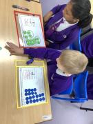 In Mastering Number, we have been focusing on using number bonds to ten to help up solve problems. We solved problems using ‘ ___ needs ___ to make 10’ and then thought about using ten and a bit to solve the addition problems.