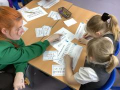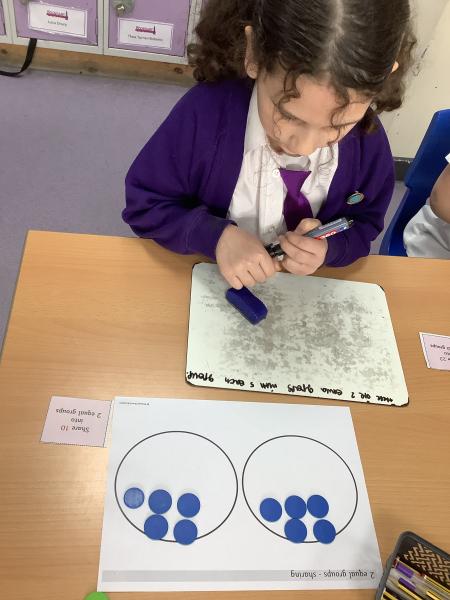 In Maths, we have completed a range of practical activities to help our understanding of mathematical concepts. This week we looked at creating equal groups by sharing and by grouping.