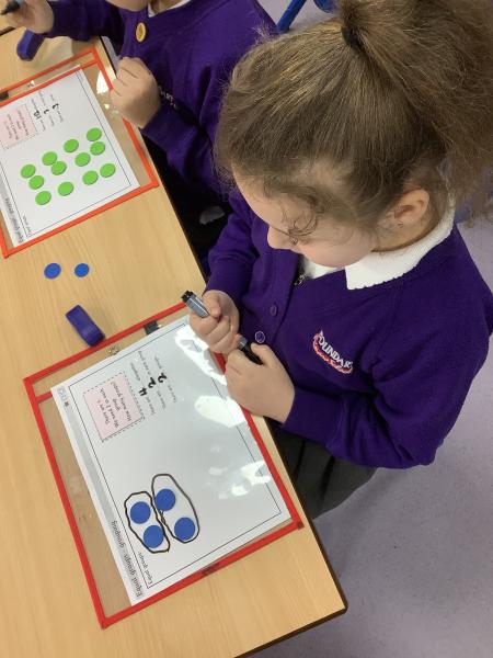 In Maths we have started our learning on multiplication. We have started by learning about groups of. We have been making differentgroups using different resources, putting ourselves into groups and completeing matching activities.