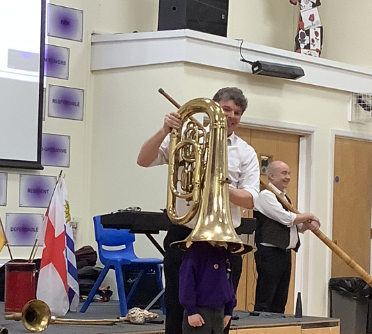 Today we had an amazing visit from Travelling by Tuba! Firstly we had an exciting assembly travelling all around the world by a range of different instruments and songs! Then Birch class went to a workshop where we learnt a range of different samba rhythms and played a wide range of instruments! They loved working as a team to create this!