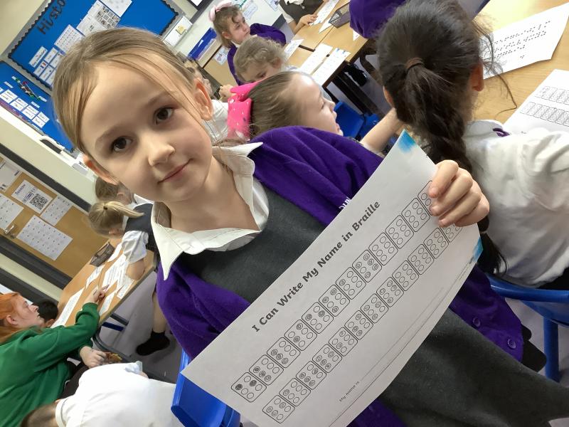 For together time, we carried on our history learning. We started with a quiz all about Louis Braille to see what facts we could remember. We then tried to decode messages that were written in braille. We found this challenging and spoke about how long it would take to learn to read and write in braille. We then used what we had learnt to write our names using braille. Throughout our learning we have spoken about how important braille’s creation was and how it has supported blind people for many years.