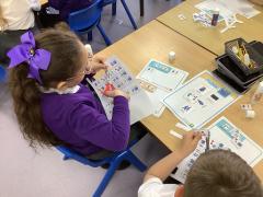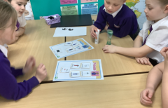 In Maths we have started our learning on multiplication. We have started by learning about groups of. We have been making differentgroups using different resources, putting ourselves into groups and completeing matching activities.
