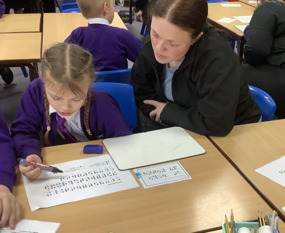 For together time, we carried on our history learning. We started with a quiz all about Louis Braille to see what facts we could remember. We then tried to decode messages that were written in braille. We found this challenging and spoke about how long it would take to learn to read and write in braille. We then used what we had learnt to write our names using braille. Throughout our learning we have spoken about how important braille’s creation was and how it has supported blind people for many years.