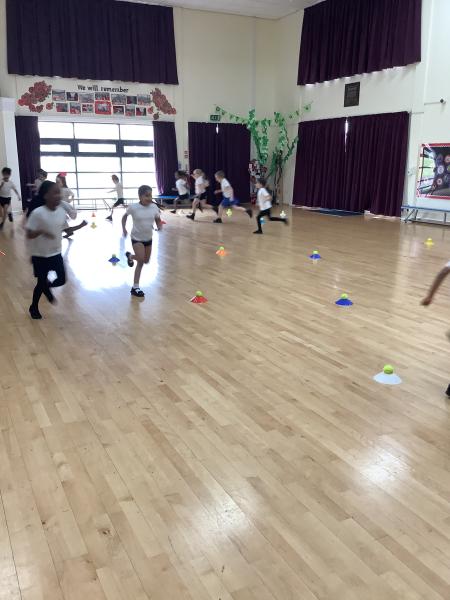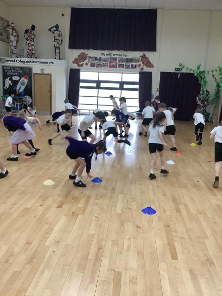 Mr Morris helped keep us perfectly in time by playing the drums, guitar and tambourine, creating a lively rhythm for our dancing. We travelled across the hall with strong leaps, followed by high‑kneed skips, concentrating on smooth timing and soft landings. Our side gallops were full of energy, with children swinging their arms, bending their knees and looking carefully in the direction of travel.