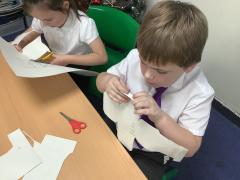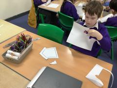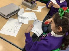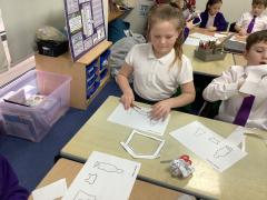 We began by exploring what shell structures are and how packaging is made using nets. The children looked at different box shapes and discussed how flat nets can be folded to create strong, three-dimensional structures.